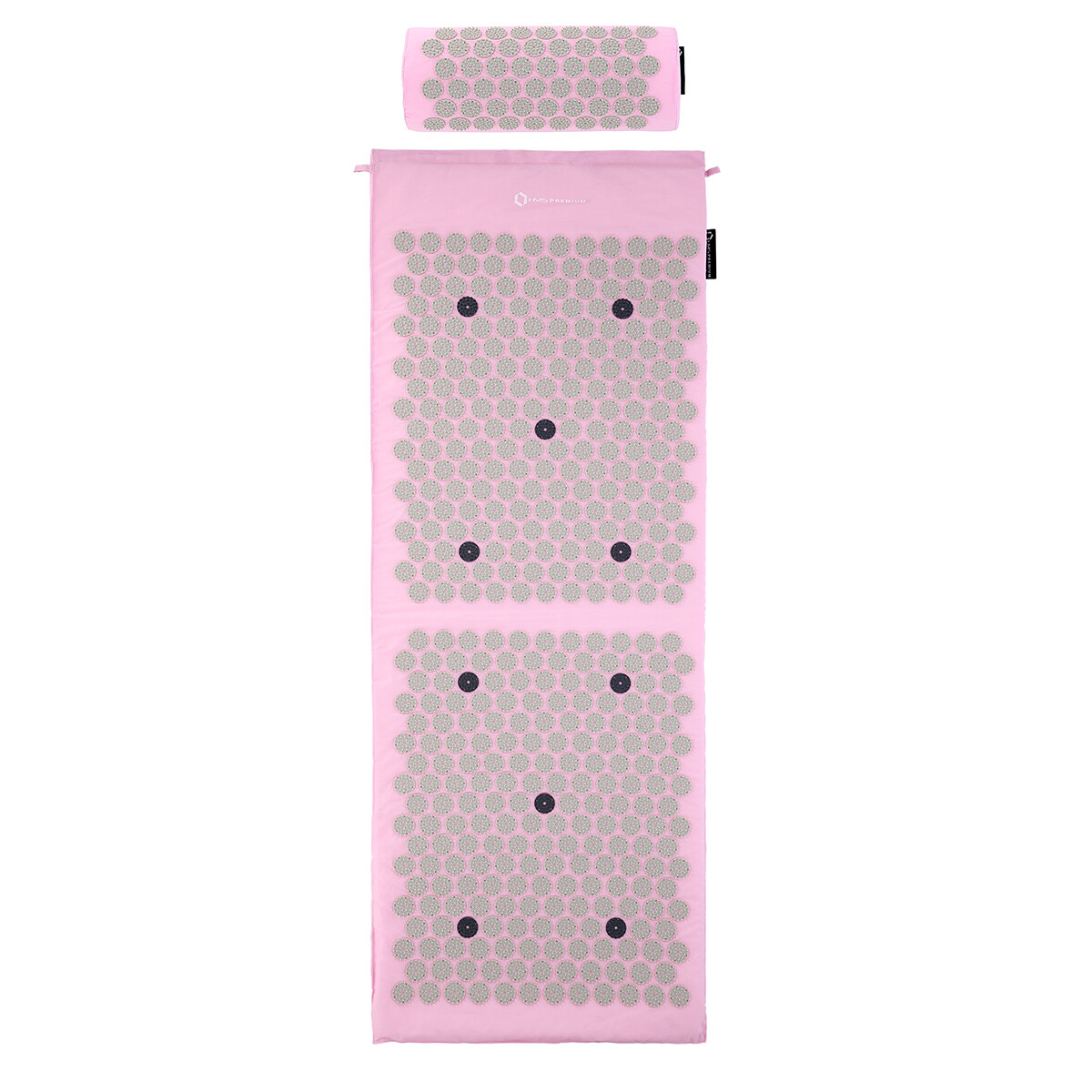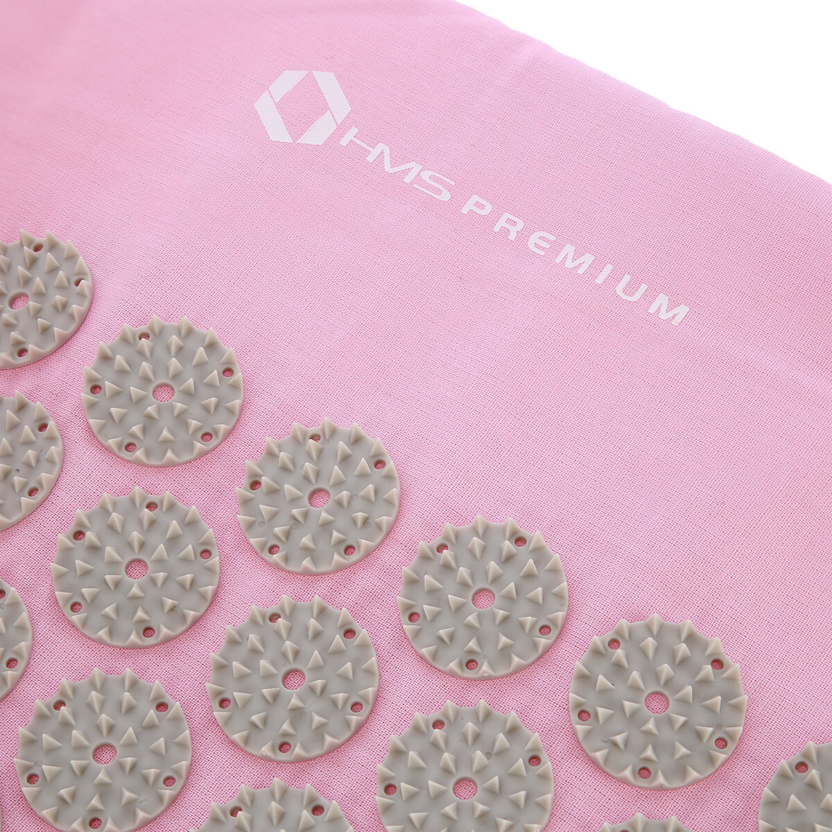 Akupresurní sada HMS Premium AKM04 obsahuje masážní podložku, polštářek a vak s popruhem pro snadné uskladnění a transport. Potah podložky a polštářku je snímatelný a lze je vyprat.