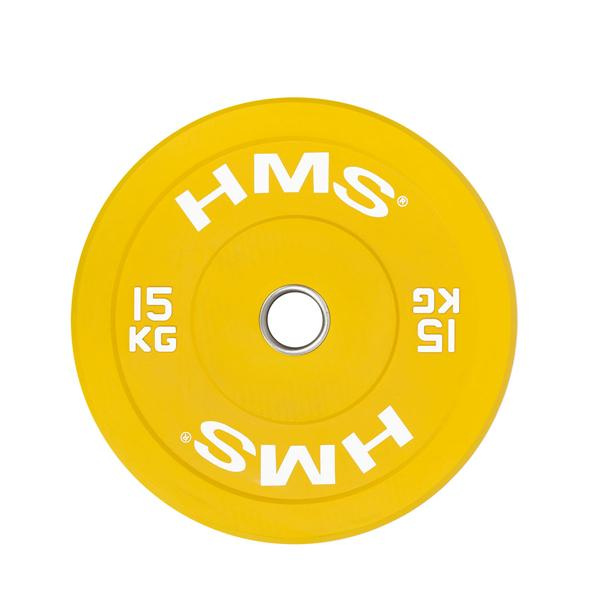 Barevný bumper kotouč HMS vhodný pro vzpěračský a funkční trénink. Jeho hlavním parametrem je odolnost, kdy i po odhodu z velké výšky, zůstane kotouč i podloží bez známky poškození. Kotouč je určen pro olympijské osy s průměrem trnů 50 mm a je zbarvený dle závodních parametrů.