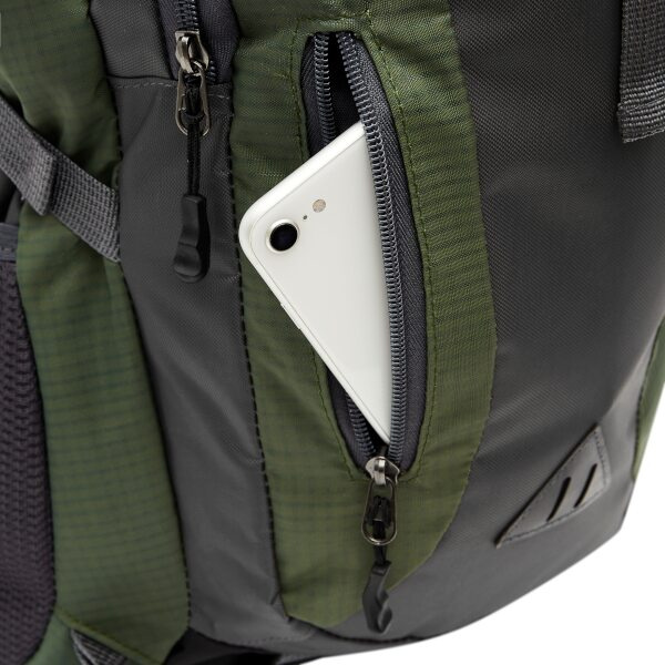 Použité kompresní popruhy umožňují přizpůsobit objem batohu jeho obsahu a zajistit tak, že vaše vybavení zůstane zajištěné a stabilní. Spodní popruhy navíc umožňují instalaci karimatky nebo jiného vybavení. Treeline je odolný proti stříkající vodě, což ochrání vaše věci před vlhkostí a port pro sluchátka je funkčním detailem, který vám umožní vychutnat si hudbu nebo audioknihy, s přehrávačem bezpečně uloženým v batohu.
