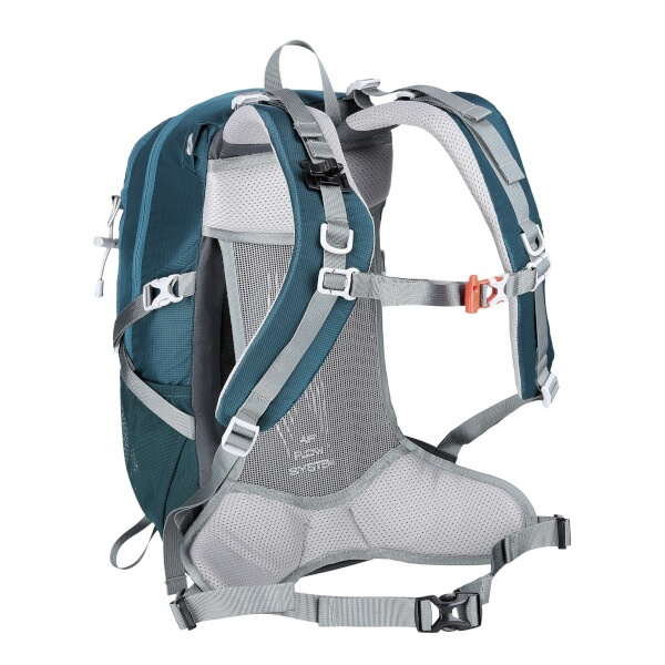 Hlavní komora na dvoucestný zip je opatřena kapsou na hydrovak, který lze zavěsit na řemínek se suchým zipem. Druhá, menší komora je také opatřena dvoucestným zipem a uvnitř se nachází 2 kapsy na drobnosti a 3 poutka například pro umístění svítilny. V horní části předního panelu se nachází menší kapsa, do které se přistupuje jednocestným zipem. Po stranách batohu jsou síťované kapsy s gumičkou v lemu, nad kapsami se nachází délkově nastavitelné popruhy s přezkou, pod které lze umístit například vyšší láhev. Z čela batohu se nachází 2 gumová poutka a 2 smyčky pro přenášení turistických holí, 4 poutka pro zavěšení například kempingového vybavení a poutko pro připevnění blikačky pro zvýšení viditelnosti za šera.