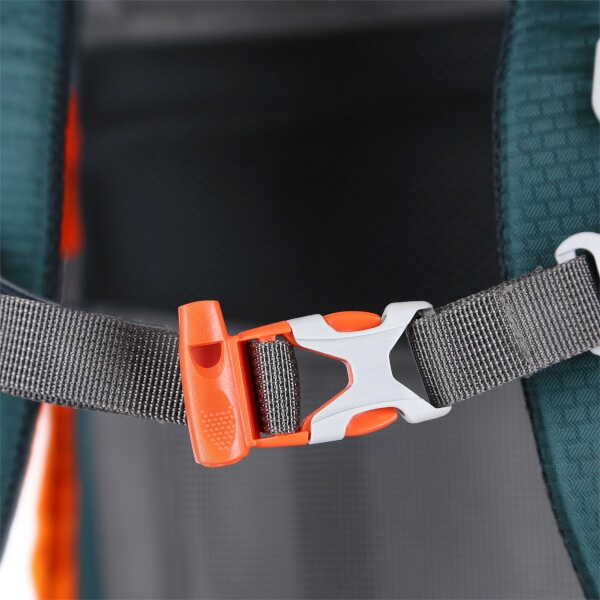 Přezka hrudního řemínku funguje jako nouzová píšťalka, která je nezbytnou součástí výbavy pro případ, že byste v nouzi potřebovali přivolat pomoc. Batoh Bergen je také vybaven reflexními prvky na ramenních popruzích, které zvyšují viditelnost uživatele při osvícení.