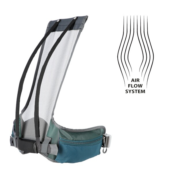 Jedinečný ventilační systém odděluje hlavní komoru od zad a zajišťuje cirkulaci vzduchu a pohodlí i v tom nejteplejším počasí. Celá váha batohu navíc spočívá na profilovaném rámu, který snižuje tlak na páteř a zvyšuje pohodlí při dlouhých horských výletech. Panel je spojen s bederním popruhem a lze jej snadno vyjmout.