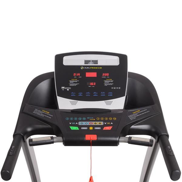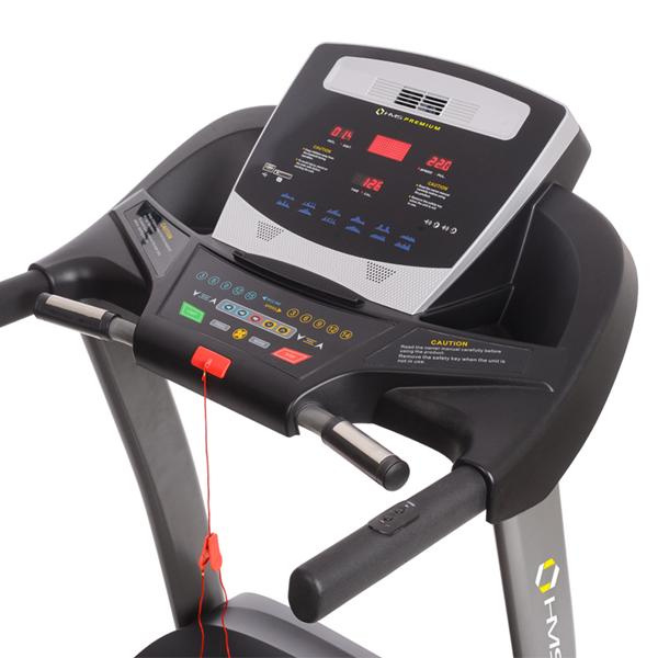 Ergonomický řídící panel s LCD displejem umožňuje jednoduché upravování tréninkových parametrů. Běžecký elektrický pás HMS BE8510i je charakteristický širokým rozsahem regulace úhlu sklonu a rychlosti – počítač má celkem 99 programů. Pro ulehčení je běžecký trenažér vybaven tlačítky rychlého výběru nastavení umožňujícími jejich změnu bez přerušování tréninku