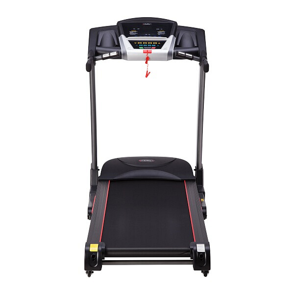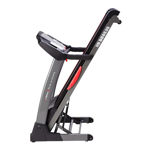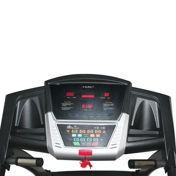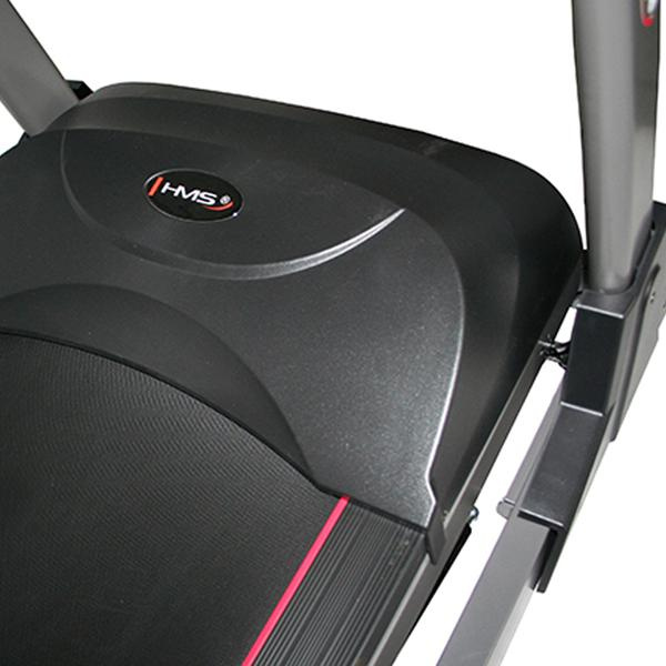 Běžecký pás BE8535 HMS je moderní, robustní běžecký trenažér s možností snadného složení a snímači tepové frekvence v rukojetích. Tichý motor s výkonem 3,5 HP zaručí maximální rychlost 22 km/h. Odpružená běžecká plocha s možností elektronického zdvihu pásu, nabízí dostatek komfortu pro každodenní trénink. Veškeré potřebné informace vám přehledně zobrazí podsvícený LED displej, pod který si díky praktické opěrce můžete umístit například tablet. Výhodou jsou zabudovaná kolečka pro snadný přesun pásu na požadované místo. Díky těmto vlastnostem je běžecký pás BE8535 HMS vhodným doplněním každé domácí posilovny.