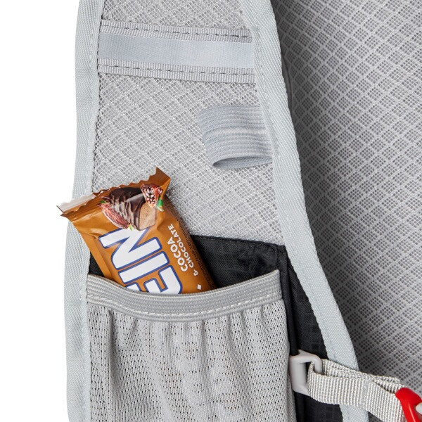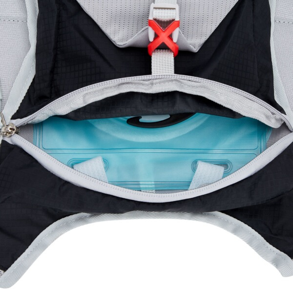 Hlavní komora batohu je opatřena přepážkou, v horní části se nachází poutko s karabinou, na které visí oddělitelný vak, do kterého lze batoh složit a můžete jej mít jako záložní batoh ve svém hlavním zavazadle. Vedle poutka nalezneme 2 suché zipy pro zavěšení hydrovaku (není součástí dodávky). Hadičku hydrovaku lze vyvést průvlaky na pravé i na levé straně pod ramenními panely. Přední síťovaná kapsa se uzavírá na přezku. Síťovina je podšitá nylonem, takže kapsa není elastická. Pod kapsou je reflexní panel, ke kterému si můžeme pomocí řemínku připnout vybavení (například helmu). Na horní straně batohu je poutko pro snadné přenášení Trippera v ruce. Záda a ramenní popruhy jsou vyrobeny ze síťoviny doplněné o prodyšnou pěnu, která zvyšuje prodyšnost panelu a záda se budou méně potit. Ramenní popruhy jsou opatřeny reflexními pásky, gumovou smyčkou pro protažení hadičky od hydrovaku a pružnými kapsami. Na levém popruhu se navíc nachází kapsička s průhlednou čelní stranou, do které lze uložit například kartičku pro případ ztráty, startovní číslo a podobně. Popruhy jsou spojeny řemínkem s plastovou přezkou.