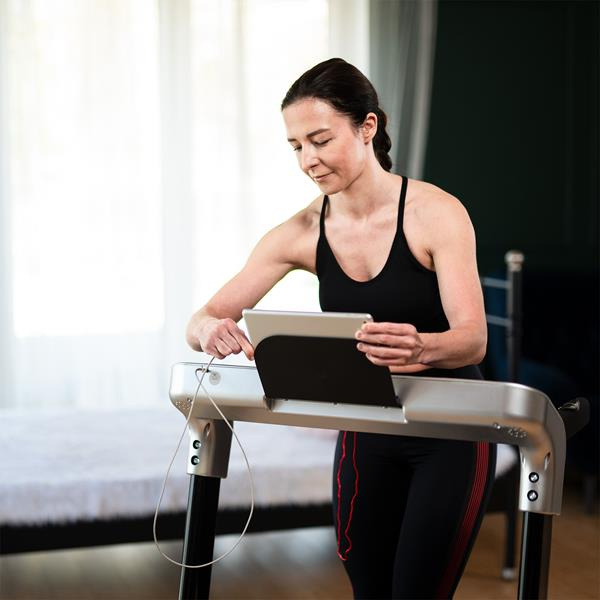 Bluetooth a USB konektivita – umožňuje připojení mobilních zařízení pro přehrávání hudby a využití tréninkových aplikací.