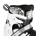 Skořepina brusle je vyrobena z odolného tvrdého plastu s pevnou špičkou a ventilačními otvory, které podporují proudění vzduchu. Vnitřní bota je tvořena síťovinou, prodyšnou membránou, vrstvou husté pěny o tloušťce 8 mm a vložkou z EVA, což zajišťuje vysoký komfort i při delším používání. Trojkombinace zapínání – klasické šněrování, řemínek na suchý zip a dvousekční přezka – pevně fixuje chodidlo a zvyšuje bezpečnost při jízdě.