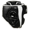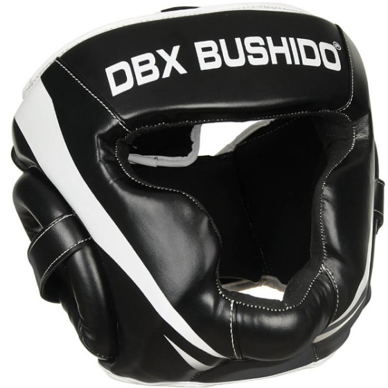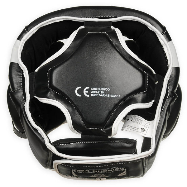 Boxerská helma DBX BUSHIDO ARH-2190 je vyrobena ze zpevněné, umělé kůže a je vyplněna PU pěnou, která dokonale pohlcuje nárazy. Přilba je navržena v souladu s bezpečnostními standardy a zajišťuje tak bezpečnost a komfort během zápasu, tréninku či nácviku se sparing partnerem. Tvar helmy je navržen tak, aby byly chráněny lícní kosti, oči, nos a uši. Zpevnění v oblasti čelisti jí poskytuje větší stabilitu a napomáhá předcházet jejím zraněním. Helma je vyrobena z umělé kůže se zvýšenou elasticitou. Uvnitř je vyplněna pěnou vysoké hustoty a povrch je upraven tak, aby nenasával pot. Díky tomu odolává praskání a snadno se udržuje. Ze zadní strany je široký pás se suchým zipem, který zaručuje, že helma bude na hlavě přesně sedět.