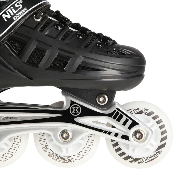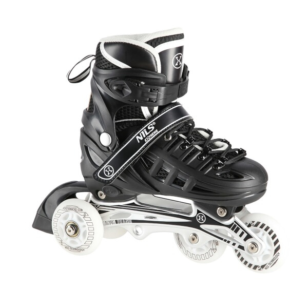 Kolečkové brusle NILS Extreme NH10905 2. generace pro začínající a poročilé bruslaře. Svítící kolečka, nůž na led, 3 možnosti uložení koleček, ložiska ABEC 7, rostoucí bota.Více
