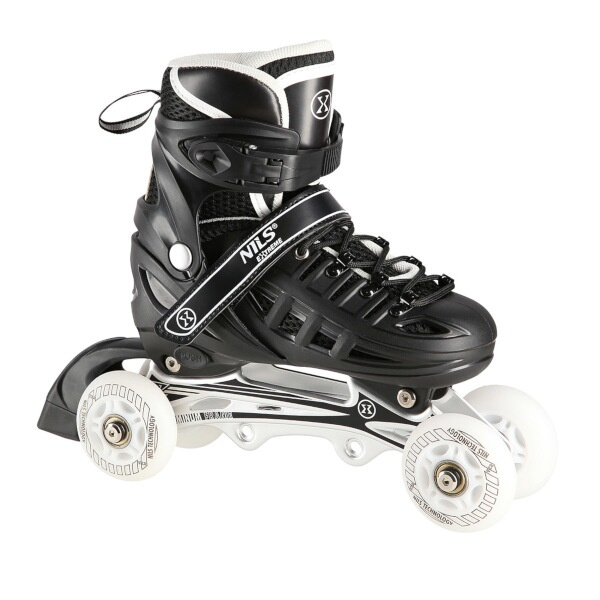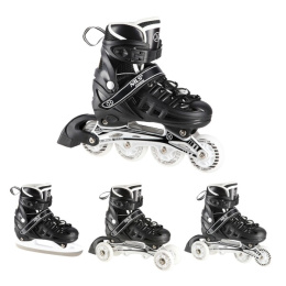 Brusle NILS Extreme NH10905 jsou multifunkční model, který nabízí hned 4 možnosti sestavení podvozku – jako brusle na led, in-line brusle, taneční (quad) brusle a pro nejmenší kombinaci 2+1+1 + nůž na led. Díky tomu jde o univerzální řešení, které se přizpůsobí věku i dovednostem uživatele a poskytne radost z jízdy po celý rok.