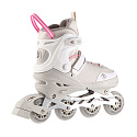 Hliníkový podvozek je osazen PU kolečky o tvrdosti 82A, ta je ideálním kompromisem mezi rychlostí, životností a pohodlím. Kolečka jsou osazena ložisky ABEC 7 pro svižnou a plynulou jízdu. Skelet brusle je vyroben z polypropylenu, který dobře přenáší energii z odrazu na kolečka a zároveň vydrží i připadný pád. Pohodlná, poloměkká bota je vyrobena z kombinace EVA a pěny o vysoké hustotě. Proti případnému vlhku ochrání prodyšná membrána. Vnitřní bota nemá krytou špičku, takže dobře větrá a noha se méně potí. Zapínání je řešeno klasickou trojkombinací - šněrování, řemínek se suchým zipem a dvousekční přezka. Pravá brusle je osazena brzdou.