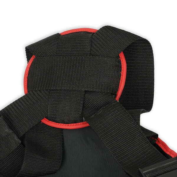 Součástí BSP jsou také 2 chrániče stehen, které se fixují pomocí 2 popruhů se suchým zipem. Aby chrániče neklouzaly, připnou se pomocí manžet se suchým zipem k chrániči hrudníku. Toto řešení umožňuje chrániče odložit, pokud je zrovna nepotřebujeme.