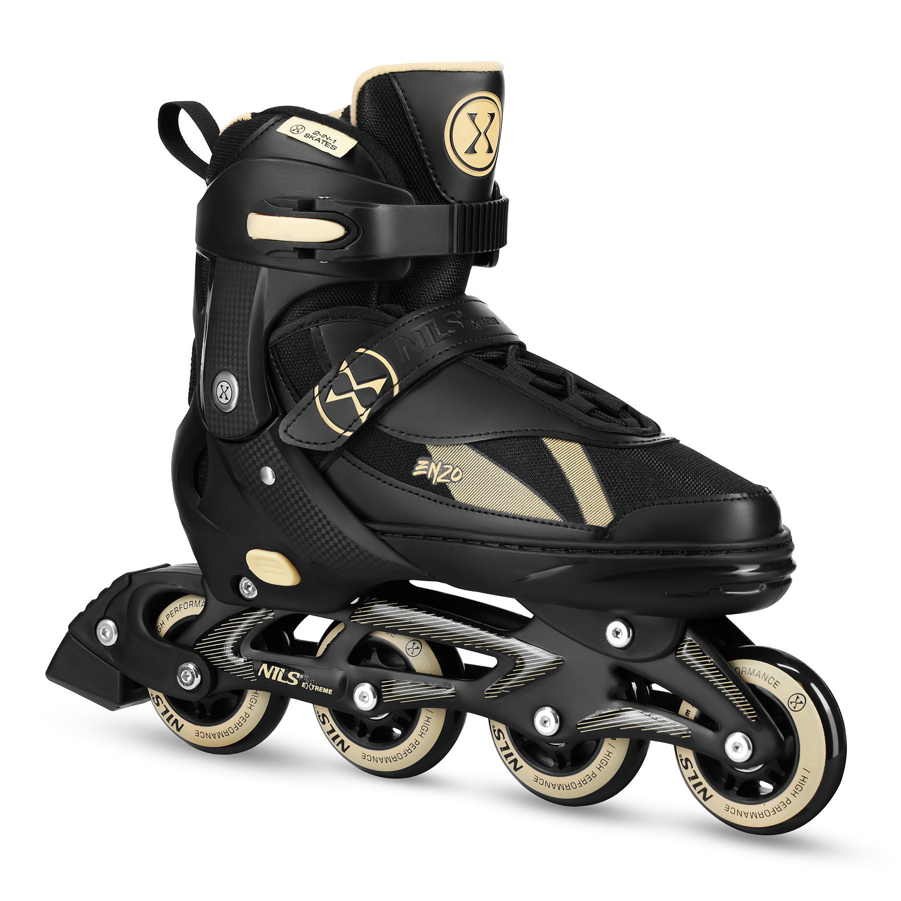 Celoroční brusle NILS Extreme NH382 Enzo 2v1. Bota nastavitelná do 4 rozměrů, vyměnitelný podvozek s kolečky nebo noži na led, zapínání na přezku, řemínek se suchým zipem a šněrování.Více