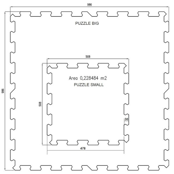 Pro neceloplošné podlahy obvykle využijete tyto typy puzzle podložek: 4x ROH, dle rozměru čtverce či obdelníku Xx OKRAJ a pro vyplnění středu plochy Xx STŘED. Pokud po sestavení podlahy potřebujete upravit finální rozměr, dlaždice lze seříznout odlamovacím nožíkem (pozor - oříznuté puzzle dílce již nebudou kompatibilní s ostatními ze všech stran, pokud se mělo časem rozebrat a znovu skládat). Pro rovný řez použijte vodící lištu.