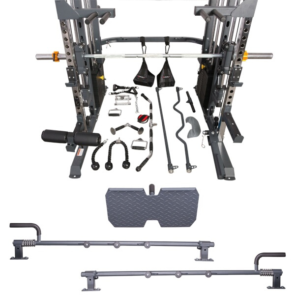 Kolejnice posilovací klece jsou skvělým pomocníkem pro silový rozvoj svalových partii. Díky plynulému chodu jsou všechny cviky izolované a vedené ve správné poloze. Posilovací zařízení HMS CYKLOP 2 zahrnuje Smith's bar s 14-ti bodovou zarážkou, horní/spodní kladky, univerzální hrazdu, rovnou a lomenou osu, adaptér pro cvičení s olympijskou osou v rohu (osa není součástí kompletu), podpěry pro kliky, krátké a dlouhé zarážky a spoustu adaptérů. Jako zátěž se používají dodávané štosy cihliček. Takové široké spektrum zařízení je ideální stroj pro lidi, kteří zvažuji celkový rozvoj svalových partii. Velká kvalita zařízení multipressu HMS CYKLOP 2 zaručuje bezproblémový provoz po dlouhou dobu. Silné rámy zkonstruované z kvalitní oceli , systém kladek a zařízení pro napínání lan splňuje ty nejvyšší technické a estetické normy.Všem doporučujeme tento stroj na domácí použití, ale stejně dobře se bude vyjímat například v hotelové, nebo soukromé posilovně.