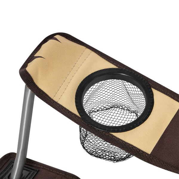 Loketní opěrky mají možnost regulace výšky jednoduchým posunem zadní části po profilu konstrukce. Pravá opěrka lokte je opatřena košíkem, do kterého se pohodlně vejde menší láhev, nebo vysoká sklenice. Pro snadné přenášení lze židli složit. Součástí je ochranný obal s popruhem přes rameno.