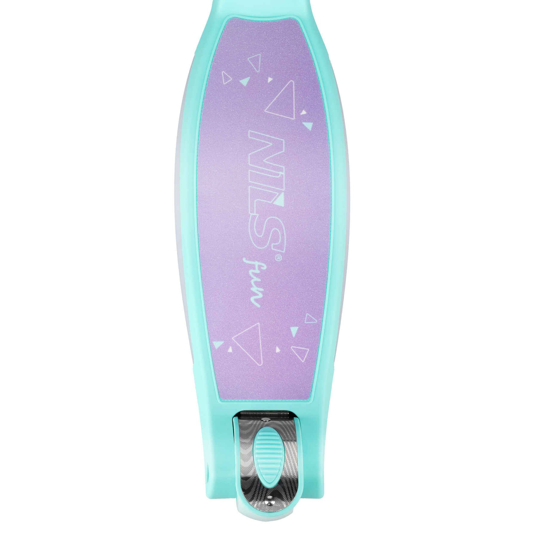 Bezpečnost a pohodlí při jízdě jsou prioritou, proto je koloběžka HLB1310 vybavena protiskluzovou platformou o rozměrech 40 x 13,5 cm. Ta poskytuje dětským nohám větší přilnavost, což zvyšuje stabilitu a kontrolu nad koloběžkou. Světelný efekt navíc dodává koloběžce moderní, atraktivní vzhled, který osloví i nejmladší uživatele. LED panely v platformě jsou napájeny 3 bateriemi AAA (LR03), které je potřeba zakoupit samostatně.