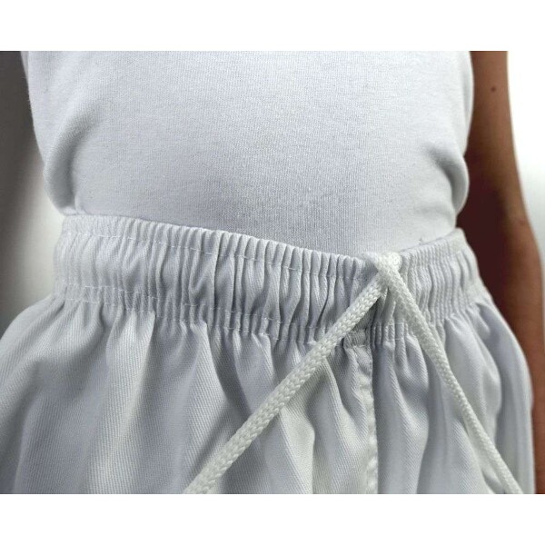 Lehký, a zároveň odolný materiál (směs polyesteru a bavlny, cca 200 g/m2) zajišťuje volnost pohybu a vynikající ventilaci, díky čemuž se vaše dítě může plně soustředit na trénink. Pohodlný střih, systém zesílení v rozkroku i na okrajích a dvojitý systém upevnění kalhot (guma + šňůrka) jsou zárukou, že oděv vydrží každý trénink a bude sloužit dlouhou dobu.