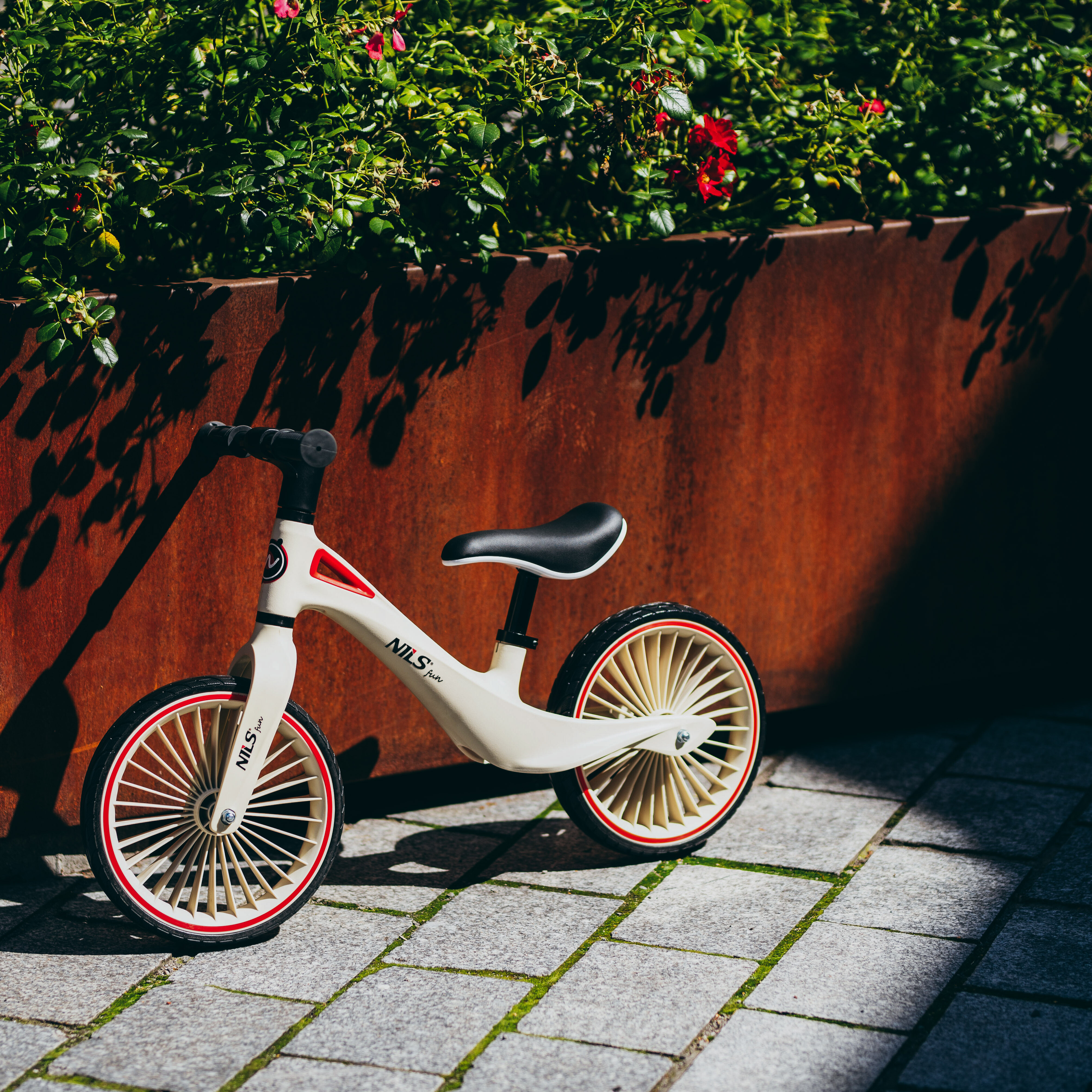 Tento model je vybaven 12" koly z odolného PU, která tlumí nerovnosti a zajišťují hladkou jízdu. Díky tomu je kolo vhodné na chodníky, cyklostezky i travnaté cesty v parku.