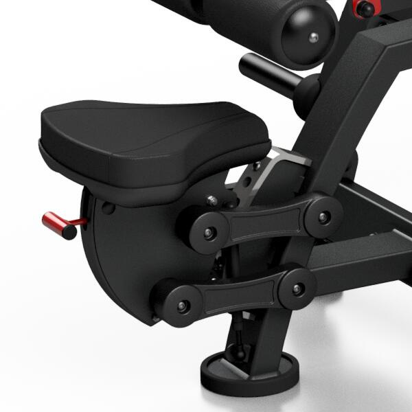 Produkt z nové kolekce profesionálních strojů značky MARBO MF (free weight). Stroje z této série jsou vyrobené z ocelových profilů 100x50x3 mm. Nový oblý design zaručuje kromě vynikající funkčnosti, také to, že budou Vaše stroje ozdobou každé posilovny. Stroje ze série Free Weight jsou konstruovány pro použití s olympijskými kotouči. Stroj na posilování prsních a tricepsových svalů MARBO MF-U009 je vybaven sedadlem regulovatelným do pěti poloh výšky jednoduchým stiskem páčky. Sedadlo je odlehčeno plynovým pístem, takže pro změnu výšky nemusíte sesedat. Zaržka nohou re nastavitelná do pěti poloh pomocí červeného, pružinového jistícího kolíku. Polostrování je vyrobeno z odolné, syntetické kůže, dvakrát prošité režnou nití COATS a je vyplněno vrstvou tvrdé pěny pro maximální komfort.