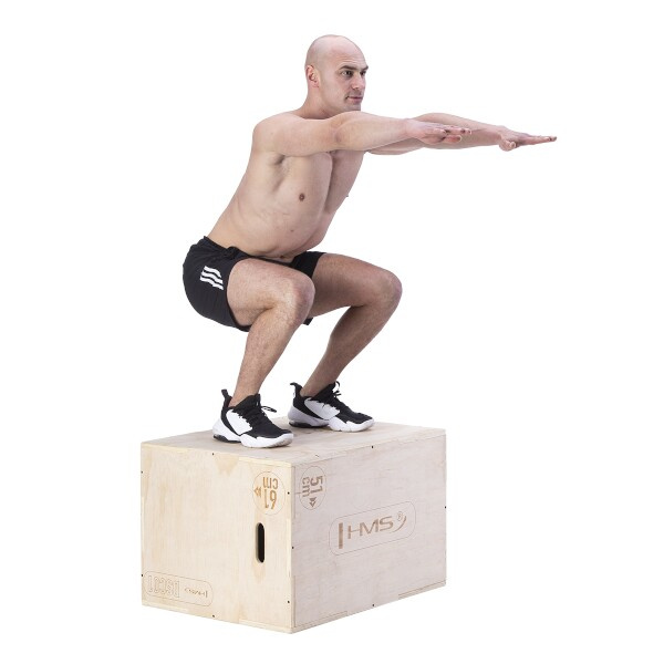 Plyometrický box HMS DSC01 je bedna určena pro kondiční trénink. Box je nedílnou součástí každého fitness centra, pomůckou profesionálních sportovců nebo i atletů. Vyroben je z 18 mm překližky a má klasické rozměry 76,2 x 60,96 x 50,8 cm (30 x 24 x 20 palců).