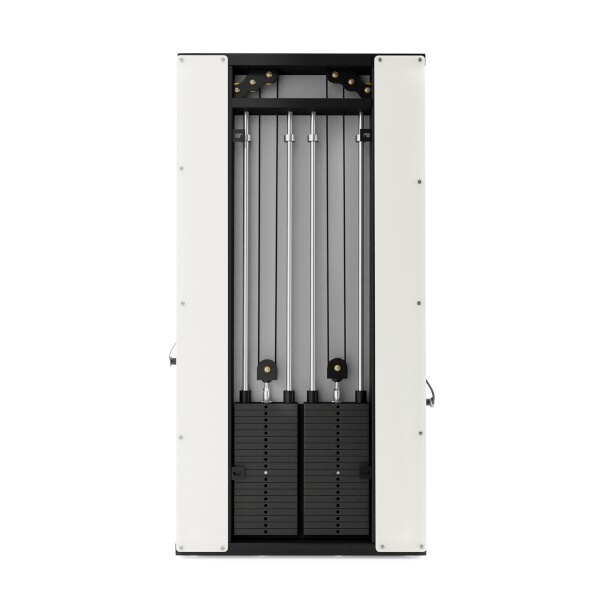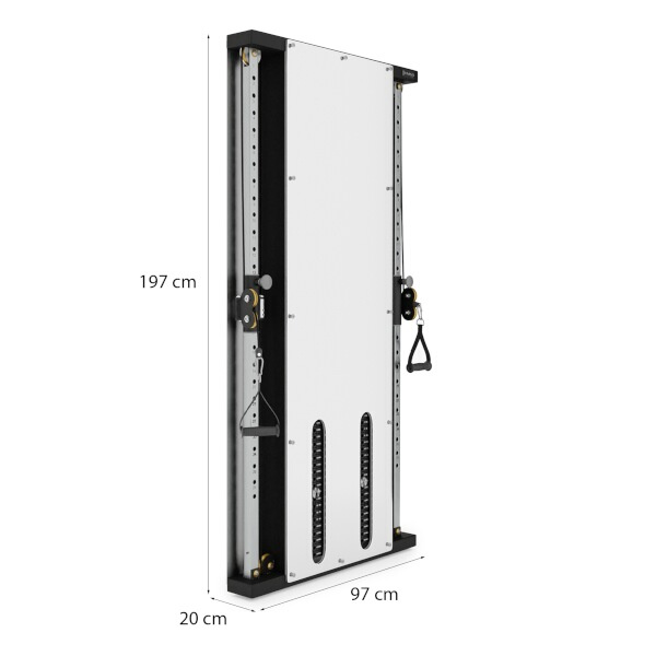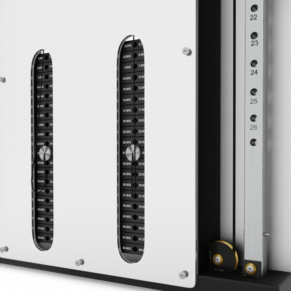 Obě kladky lze výškově nastavit do jedné z 26 poloh, takže si můžete nastavit úhel a rozsah pohybu tak, aby vyhovoval vaší postavě a preferencím. Lana jsou robustní a hladce kloužou pro plynulý a bezpečný trénink. Rukojeti jsou připevněny na karabinách, takže je můžete libovolně měnit. Jsou pohodlné a ergonomické, takže zabraňují sklouznutí a odření rukou.