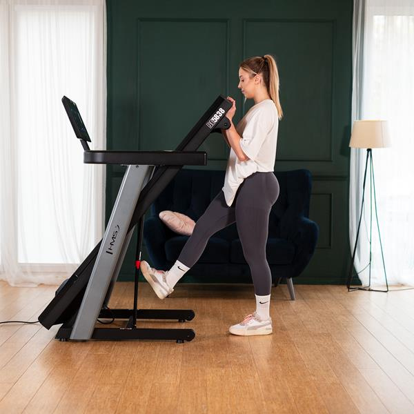 S běžeckou plochou o rozměrech 142 × 50 cm a sofistikovaným odpružením, které zahrnuje 6 vnitřních silentbloků, nabízí BE5838 maximální komfort i při dlouhých bězích. Tlumení výrazně snižuje zátěž kloubů, což z něj činí ideální volbu pro každodenní trénink. Navíc systém Soft Drop umožňuje snadné a bezpečné sklápění běžecké plochy, což zajišťuje praktické skladování. Transportní kolečka a kompaktní rozměry ve složeném stavu usnadňují manipulaci a šetří místo.