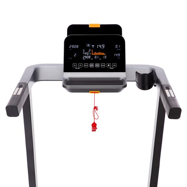 BE5873 disponuje počítačem s přehledným LCD displejem, který nabízí 36 přednastavených tréninkových programů, 3 uživatelské programy a 1 manuální režim. Snímače sledují čas, vzdálenost, rychlost, spálené kalorie, tepovou frekvenci a pomocí funkce Body Fat analyzují procento tělesného tuku. Tyto funkce vám umožní efektivně sledovat pokrok a upravovat intenzitu tréninku podle vašich individuálních potřeb. Praktická tlačítka na rukojetích zajišťují snadnou úpravu rychlosti a sklonu bez přerušení cvičení.