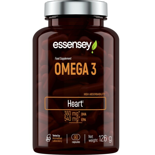 ESSENSEY OMEGA 3. Doplněk stravy. Přípravek v kapslích s obsahem nenasycených mastných kyselin: EPA a DHA, které patří do skupiny omega-3 mastných kyselin. Kyselina eikosapentaenová (EPA) a kyselina dokosahexaenová (DHA) přispívají ke správné funkci srdce. K příznivým účinkům dochází v případě konzumace 250 mg EPA a DHA denně.