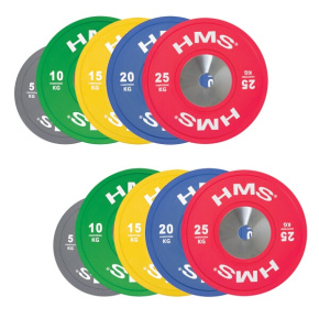 Set oympíjských kotoučů HMS vhodný pro závody ve vzpěračství a při funkčním tréninku. Tento set je zbarven přesně podle závodních norem. Jeho hlavním parametrem je odolnost, kdy i po odhodu z velké výšky, zůstane kotouč i podloží bez známky poškození. Kotouč je určen pro olympijské osy s průměrem trnů 50 mm.