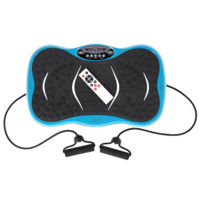 Vibrační plošina HMS SVP03. Pracovní plocha 66 x 30 cm, magnety pro podporu prokrvování, 99 rychlostí, 4+1 tréninkový program, dálkové ovládání, gumová lana. Hmotnost 11,5 kg, nosnost 150 kg.