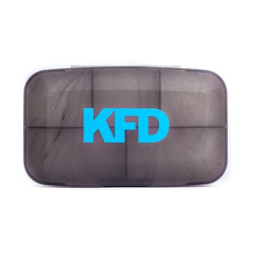 Profesionální uzavíratelná krabička na tablety/kapsle od známé německé společnosti Buchsteiner s potiskem KFD.