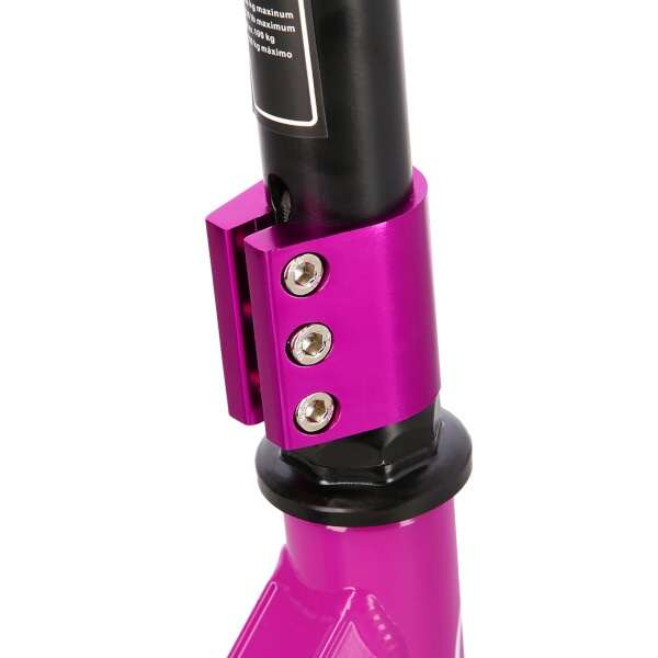 Freestylová koloběžka nemá žádný skládací mechanismus ani systém nastavení výšky řídítek - tyto typy řešení by mohly oslabit celou konstrukci, což samozřejmě není žádoucí u produktu, kde je odolnost zásadní.