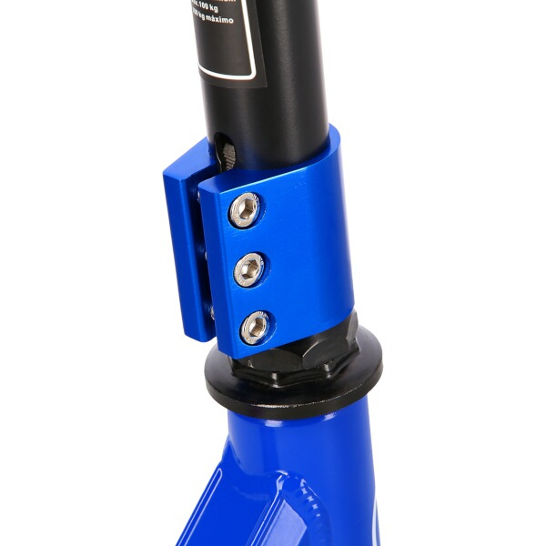 Freestylová koloběžka nemá žádný skládací mechanismus ani systém nastavení výšky řídítek - tyto typy řešení by mohly oslabit celou konstrukci, což samozřejmě není žádoucí u produktu, kde je odolnost zásadní.