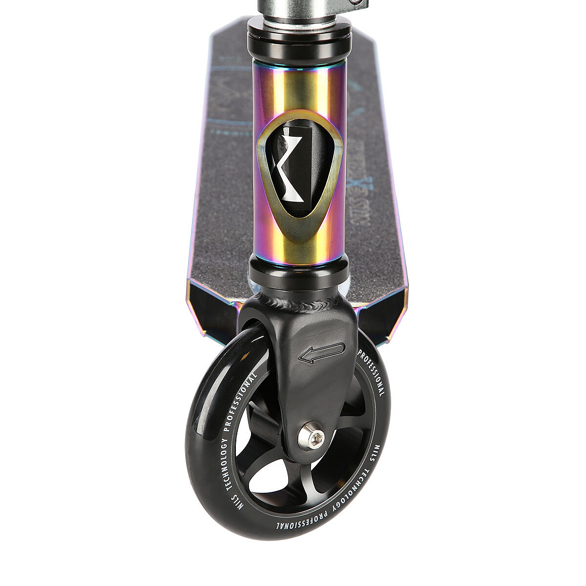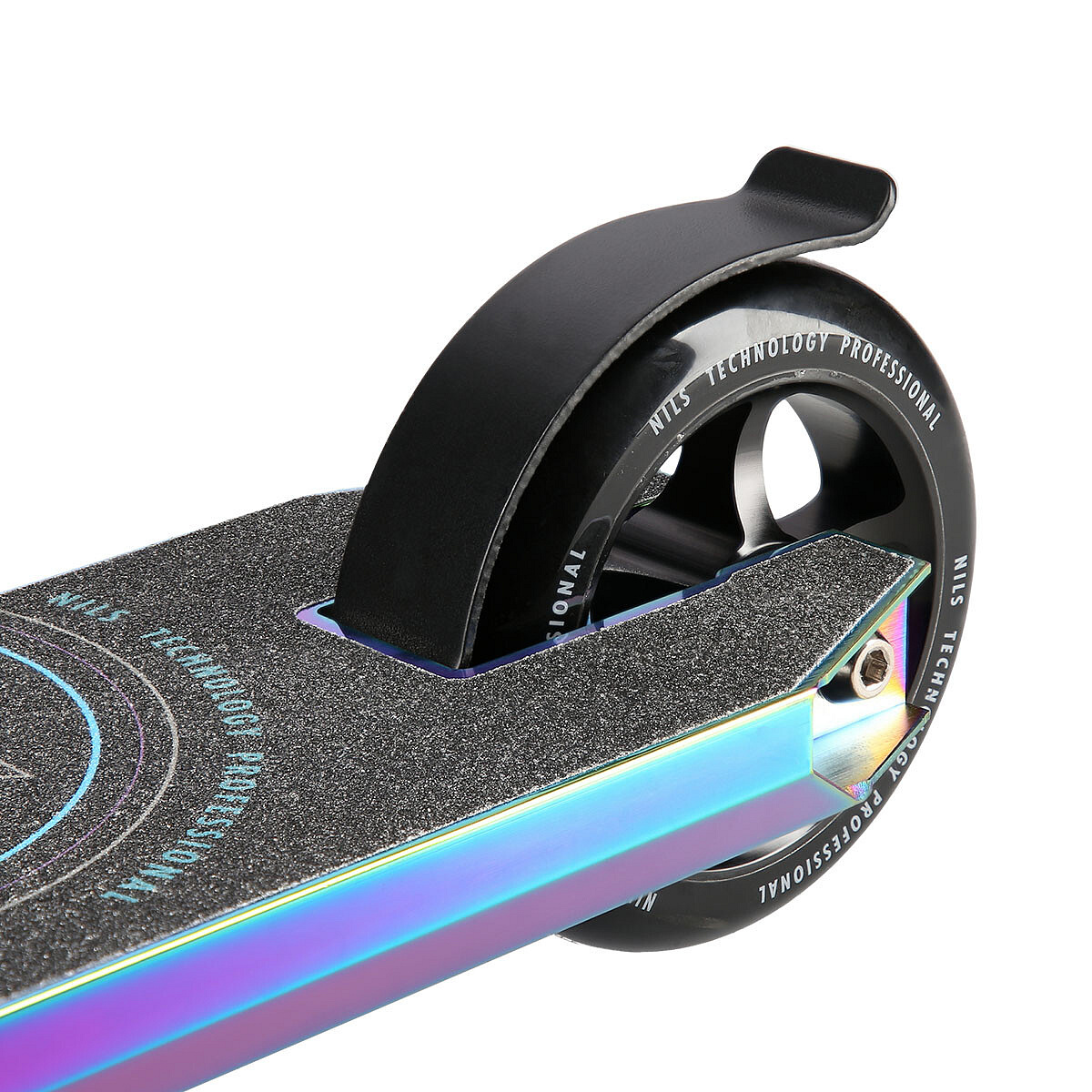 NILS Extreme HS109 je freestyle koloběžka s nosností 100 kg a je tak vhodná jak pro děti, tak pro dospělé. Konstrukce je vyrobena ze silné a trvanlivé oceli. Model HS109 je vhodný na asfalt a dlažbu. Kolečka o rozměru 100 x 24 mm jsou osazena ložisky ABEC 9, bezpečnost zaručuje zadní přítlačná (blatník) brzda. NILS Extreme HS109 je díky malým, rychlým kolečkům, robustní, pevné kostrukci a řídítkům protáčejícím se o 360° určena k provádění triků.