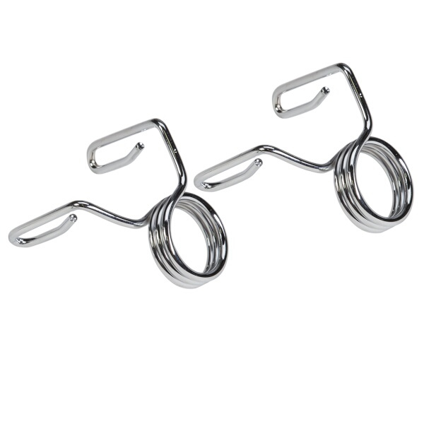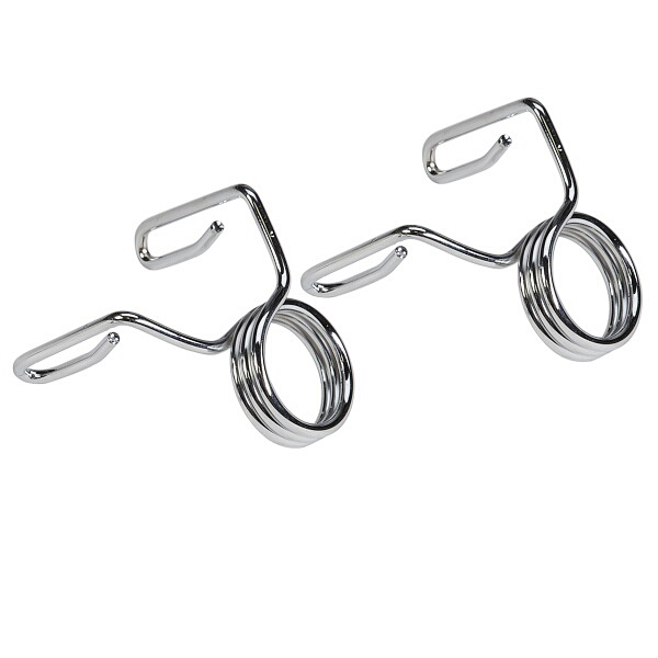 Součástí sady jsou dvě pružinové svorkym které zajišťují, že závaží zůstanou na svém místě.