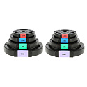 Kotouče jsou vyrobeny z trvdého plastu, který je vyplněn cementem. Trny jsou hladné o průměru 25,4 milimetrů a kotouče jsou proti posunutí jištěny pružonovými uzávěry.