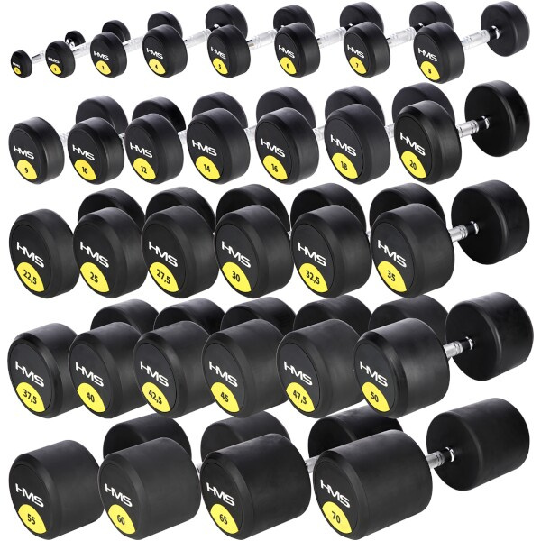 Profesionální jednoruční činka HMS HG Pro je vyrobena z litinového odlitku pokrytého silnou vrstvou gumy. Hmotnosti jsou dostupné v rozsahu od 1 do 70-ti kilogramů.Více