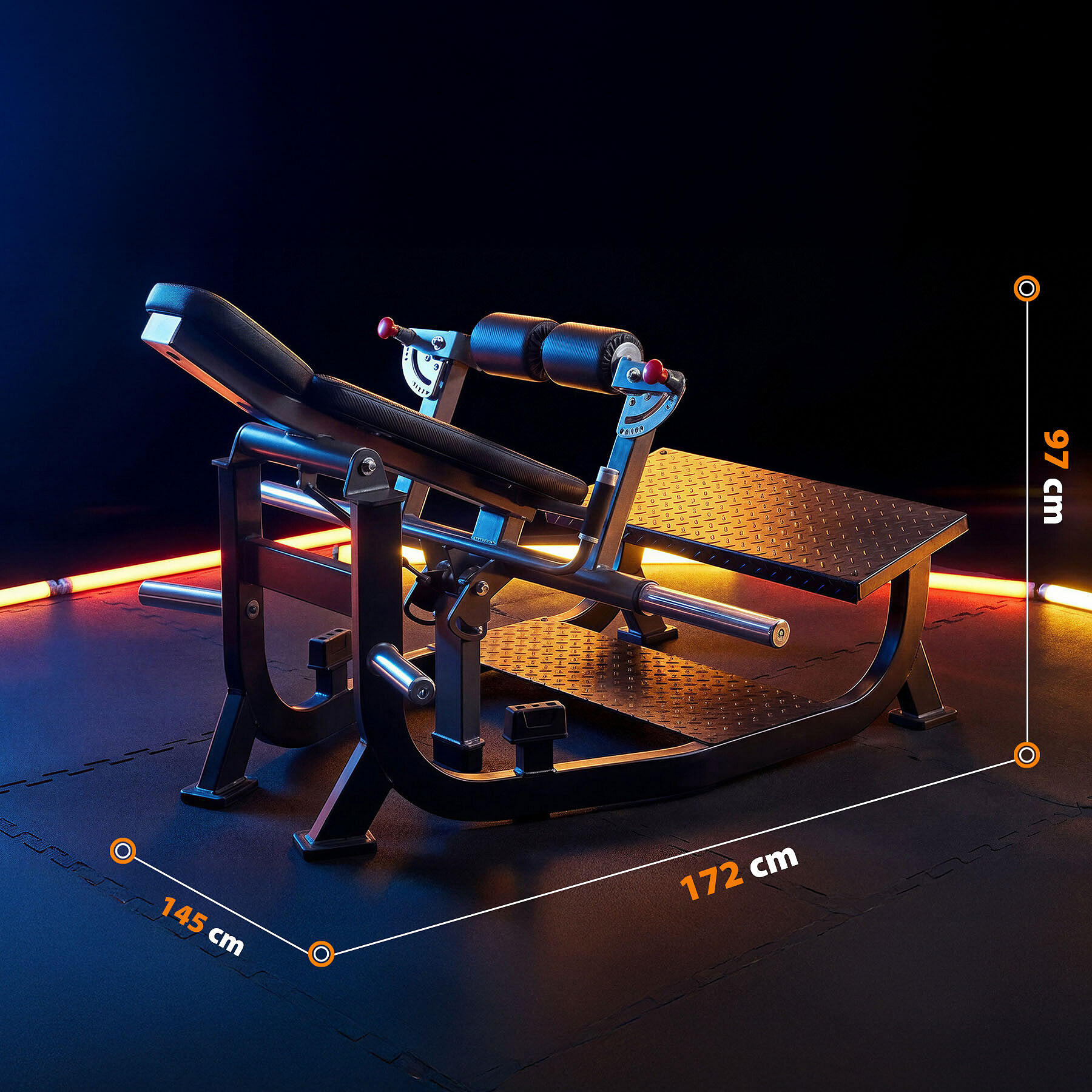 Díky vysoké odolnosti, ergonomii a profesionálním parametrům umožňuje vytvořit moderní a efektivní zónu pro trénink hýždí, která patří mezi nejvyhledávanější části každé posilovny.