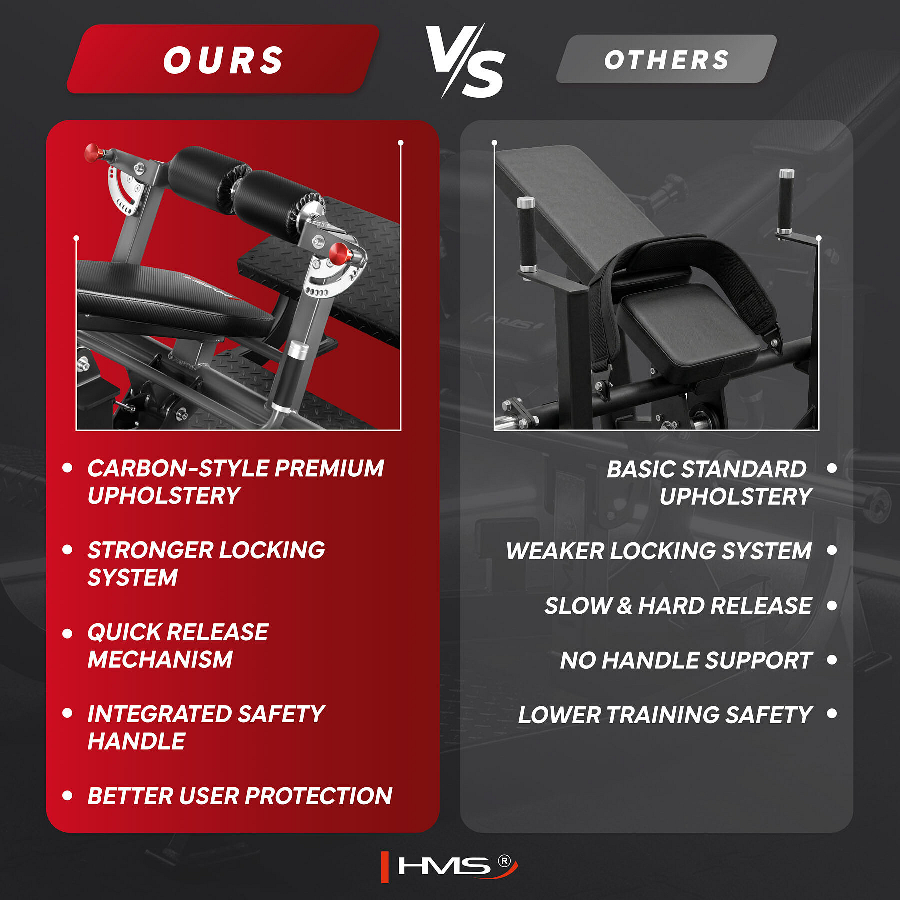 MHT8232 HMS je profesionální stroj na hip thrust navržený pro maximálně efektivní trénink hýžďových svalů a bezpečné používání. Robustní konstrukce, maximální zatížení až 500 kg, 10stupňové nastavení a komfortní čalounění s karbonovým vzhledem z něj dělají ideální vybavení pro komerční posilovny, fitness centra i profesionální tréninkové zóny.