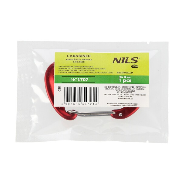 Popis Hliníková karabina NILS Camp NC1707 12kN červená