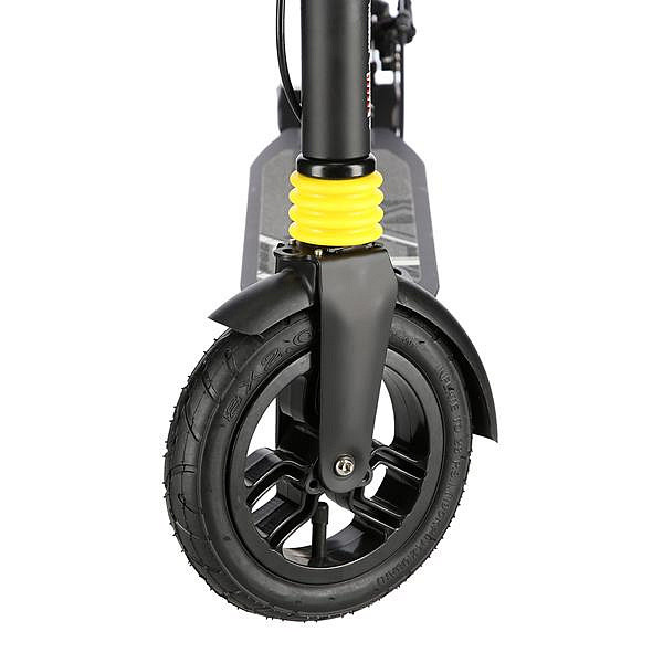 Systém odpružení obou kol zvyšuje jízdní komfort. Tlumiče pohlcují nárazy a jízda po nerovném asfaltu, nebo dlažebních kostkách je příjemnější a tižší. Robustní zadní blatník slouží jako přítlačná brzda, která ještě podtrhuje brzdný účinek kotouče. Samotný kotouč je bržděn jedním pístkem, který je mechanicky ovládaný lankem z páčky na řídítkách, ty jsou opatřeny gumovými rukojeťmi, které zajišťují pevný a pohodlný úchop. Velká kola jsou osazena ložisky ABEC 9 a pumpovanou pneumatikou o průměru 200 milimetrů. Tato kombinace zajišťuje rychlou, plynulou a bezpečnou jízdu. Pumpované pneumatiky navíc spolupracují s tlumiči a také pohlcují povrchové nerovnosti. Blatník na předním kole a skládací stojánek jsou již jen pomyslnou "třešničkou na dortu", která přizpívá k maximálnímu možnému komfortu z jízdy a k celkové radosti ze samotného použivání modelu MH208T.