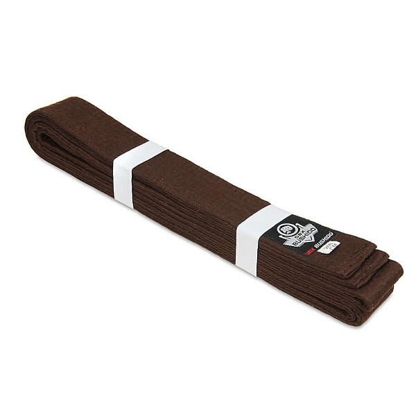 Pás ke kimonu DBX BUSHIDO OBI hnědé barvy, který označuje technický stupeň 1. a 2. KYU.