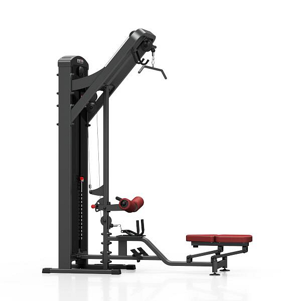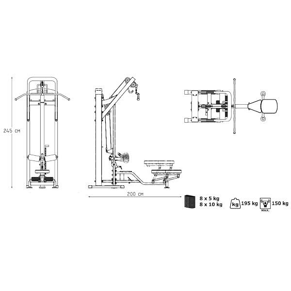 Horní a dolní kladka MARBO MP-U211 je nekompromisní, profesionální vybavení pro Vaší posilovnu. Pro výrobu byly zvoleny ocelové profily 120x60x3mm a 80x40x3mm, které zaručují nečekanou trvanlivost. Zátěž tvoří 8ks 5kg a 8ks 10kg cihel. Celková váha závaží dodávána se strojem je tedy 120kg. Horní kladka je ve výšce 230cm a tak mohou na stroji cvičit i jedinci o výšce 200cm. Tichý chod zajištuje zakrytování černým plastem, z přední části je kryt opatřen průhledem pro snadné nastavení požadovaného počtu cihel. U dolní kladky máte k dispozici pogumovanou plochu pro odložení adaptéru po cvičení, u horní kladky plní stejnou funkci odkládací háky. Polstrovaní je ze syntetické kůže sešité režnou nití značky COATS vyplněné tvrdou pěnou, to celé ja na 3mm hrubé, ocelové desce. Pro věčí efektivitu cvičení je kladka vybavena drážkovanými opěrami nohou. Zarážka nohou je nastavitelná do tří poloh. Sedátko má dvě polohy. Zadní, nízkou pro trénink na spodní kladce a přední, vysokou pro trénink na kladce vrchní. Stroj je navíc opatřen velikou samolepkou, která instruuje cvičence, jaké cviky jdou na stroji provádět a které skupiny svalů daný cvik posiluje.