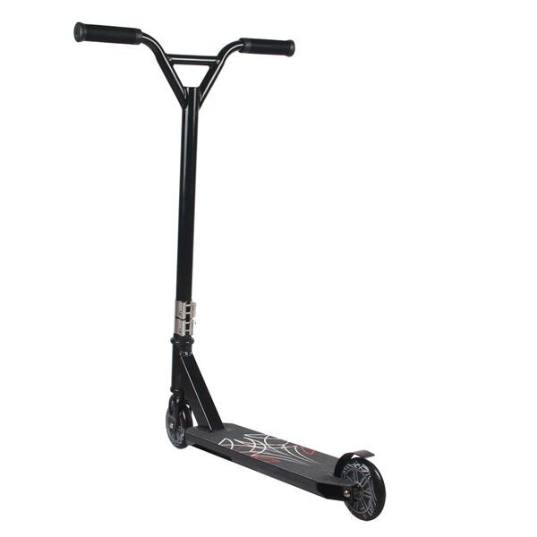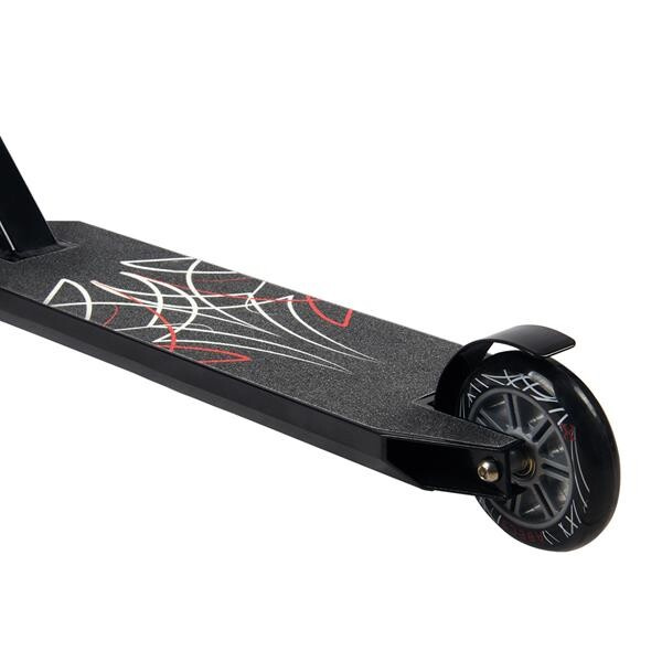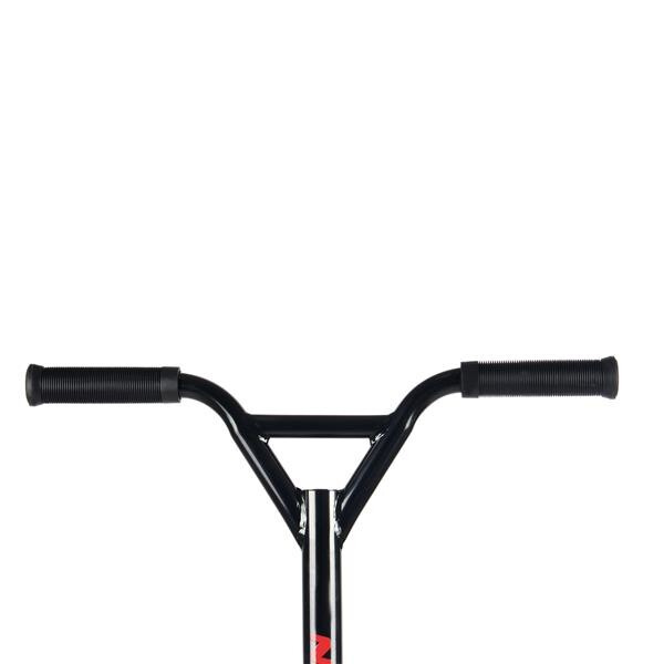 Freestylová koloběžka nemá žádný skládací mechanismus ani systém nastavení výšky řídítek - tyto typy řešení by mohly oslabit celou konstrukci, což samozřejmě není žádoucí u produktu, kde je odolnost zásadní.