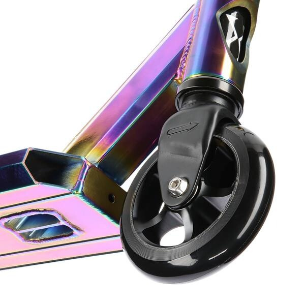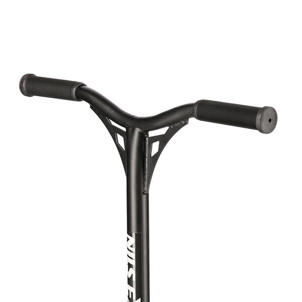 Freestylová koloběžka nemá žádný skládací mechanismus ani systém nastavení výšky řídítek - tyto typy řešení by mohly oslabit celou konstrukci, což samozřejmě není žádoucí u produktu, kde je odolnost zásadní. Při provádění triků se konstrukce setkává s velmi vysokým zatížením. Díky použití pevné oceli a silného hliníku je téměř nemožné koloběžku HS014 PRO dostat na limit a tak můžete i složité a náročné triky provádět s maximální jistotou.