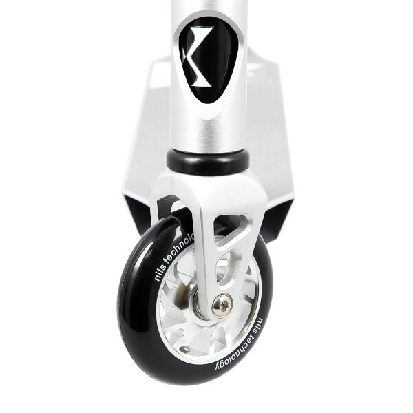 Freestylová koloběžka nemá žádný skládací mechanismus ani systém nastavení výšky řídítek - tyto typy řešení by mohly oslabit celou konstrukci, což samozřejmě není žádoucí u produktu, kde je odolnost zásadní. Při provádění triků se konstrukce setkává s velmi vysokým zatížením. Díky použití pevné oceli a silného hliníku je téměř nemožné koloběžku HS014 PRO dostat na limit a tak můžete i složité a náročné triky provádět s maximální jistotou.