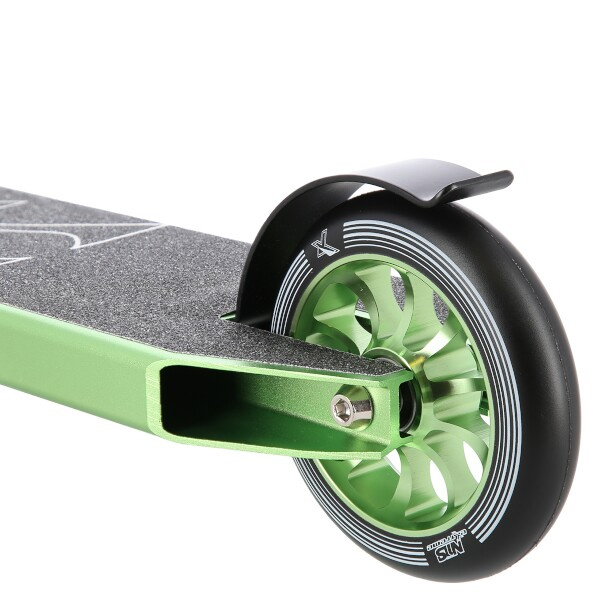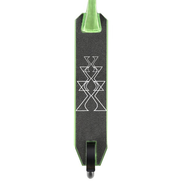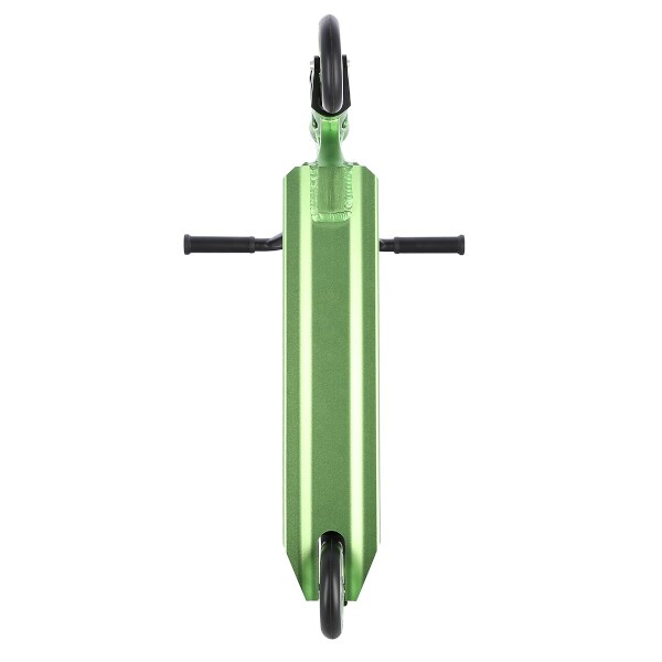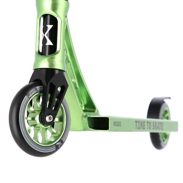 Freestylová koloběžka nemá žádný skládací mechanismus ani systém nastavení výšky řídítek - tyto typy řešení by mohly oslabit celou konstrukci, což samozřejmě není žádoucí u produktu, kde je odolnost zásadní.