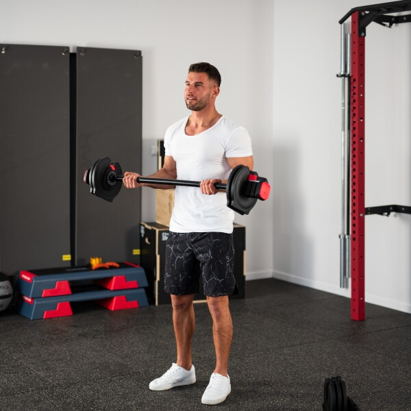 Trénink s obouruční činkou je jedním z nejúčinnějších způsobů budování svalové hmoty a síly. Činka umožňuje zvedat značné váhy, což stimuluje růst a rozvoj svalů. Trénink s činkou zapojuje mnoho svalových partií, což prospívá držení těla, stabilitě a výkonnosti. Trénink s činkou také zvyšuje spalování kalorií a tuků. V této variantě lze nastavit hmotnost činky na 2,5 - 8 - 10 - 12 - 15 - 17 - 19 - 21 - 23 - 25 - 27 - 29 - 32 - 34 - 36 - 41 kg.