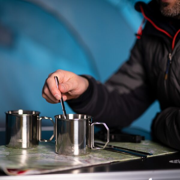 Sada obsahuje čtyři hrnky, z nichž každý váží pouhých 80 gramů, díky čemuž jsou lehké a snadno se sbalí, aniž by přidávaly další váhu. Kromě toho mají hrnky mimořádně praktické, skládací uši, které nejen usnadňují skladování a přepravu, ale také zajišťují pohodlné používání i při těch nejaktivnějších dobrodružstvích. Skládací uši jsou řešením, díky kterému tyto hrnky zaberou ještě méně místa ve vašem batohu.